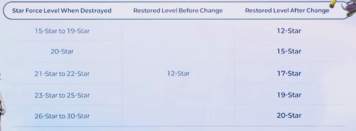 星之力强化期间降低损坏装备的损失 (根据图片,可能引入了30星?)