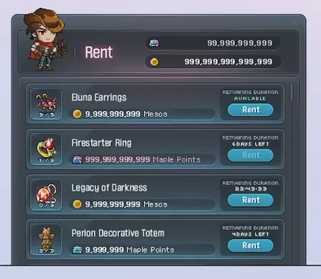 当你特定的装备碎片还没有集齐,或是你需要特殊的戒指技能,你可以租用这个装备一天