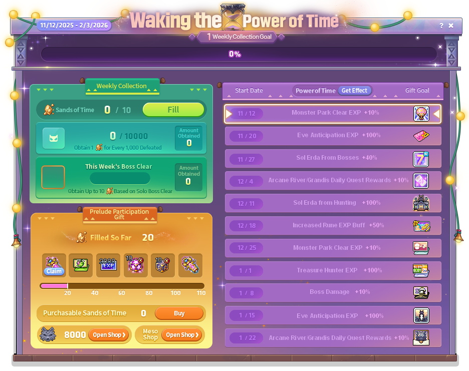 - 每种装备类型都有特定的奇迹时间窗口,请务必留意这些日期!