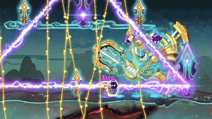 召唤一道原始闪电,如电潮般席卷战场。迅捷的电火花追踪敌人,反弹后再次攻击。