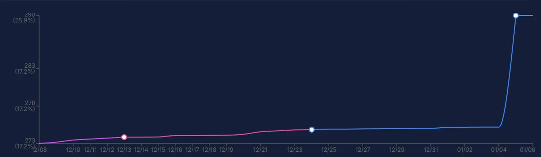 这里还有一位玩家的情况则截然相反。他们不是一天之内积累超过100万亿,而是每天增长20万亿以上。