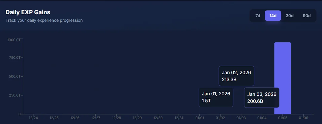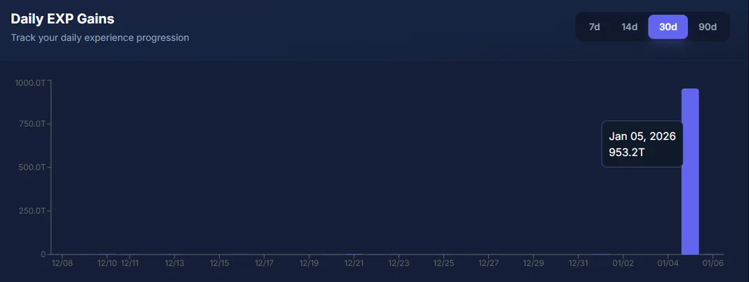 这位玩家一天之内就获得了超过900T的经验值。肯定是真的吧?还有几个类似的玩家。
