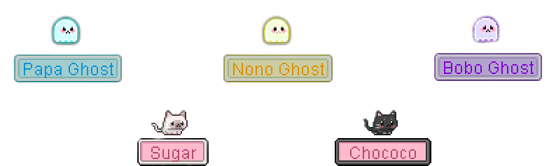 你还可以获得爸爸幽灵、诺诺幽灵、波波幽灵、糖糖和巧克力可可宠物!召唤爸爸幽灵、诺诺幽灵和波波幽灵宠物即可获得“多彩惊吓!”技能,该技能将提升你的武器攻击力和魔法攻击力。