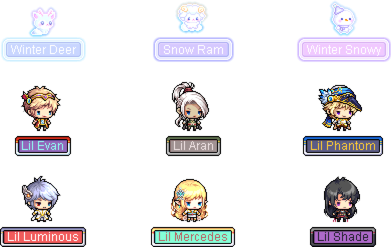 打开精灵的奇妙浆果(仅限英雄难度世界),即可随机获得一只宠物!永久宠物从左至右依次为:冬鹿、雪羊、冬雪、小伊凡、小阿兰、小幻影、小光辉、小梅赛德斯和小阴影。冬鹿、雪羊和冬雪宠物拥有高级自动移动技能,可增加宠物自动拾取物品的范围。