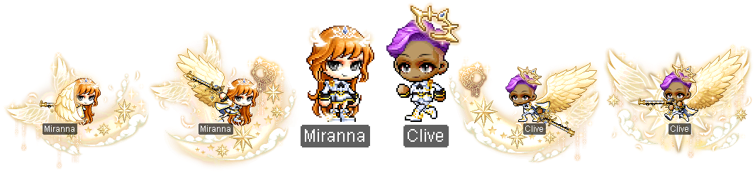 克莱夫:唱诗班皇冠、丝绸炽天使套装(男)、神圣陛下、守护炽天使之翼和神圣恩典。