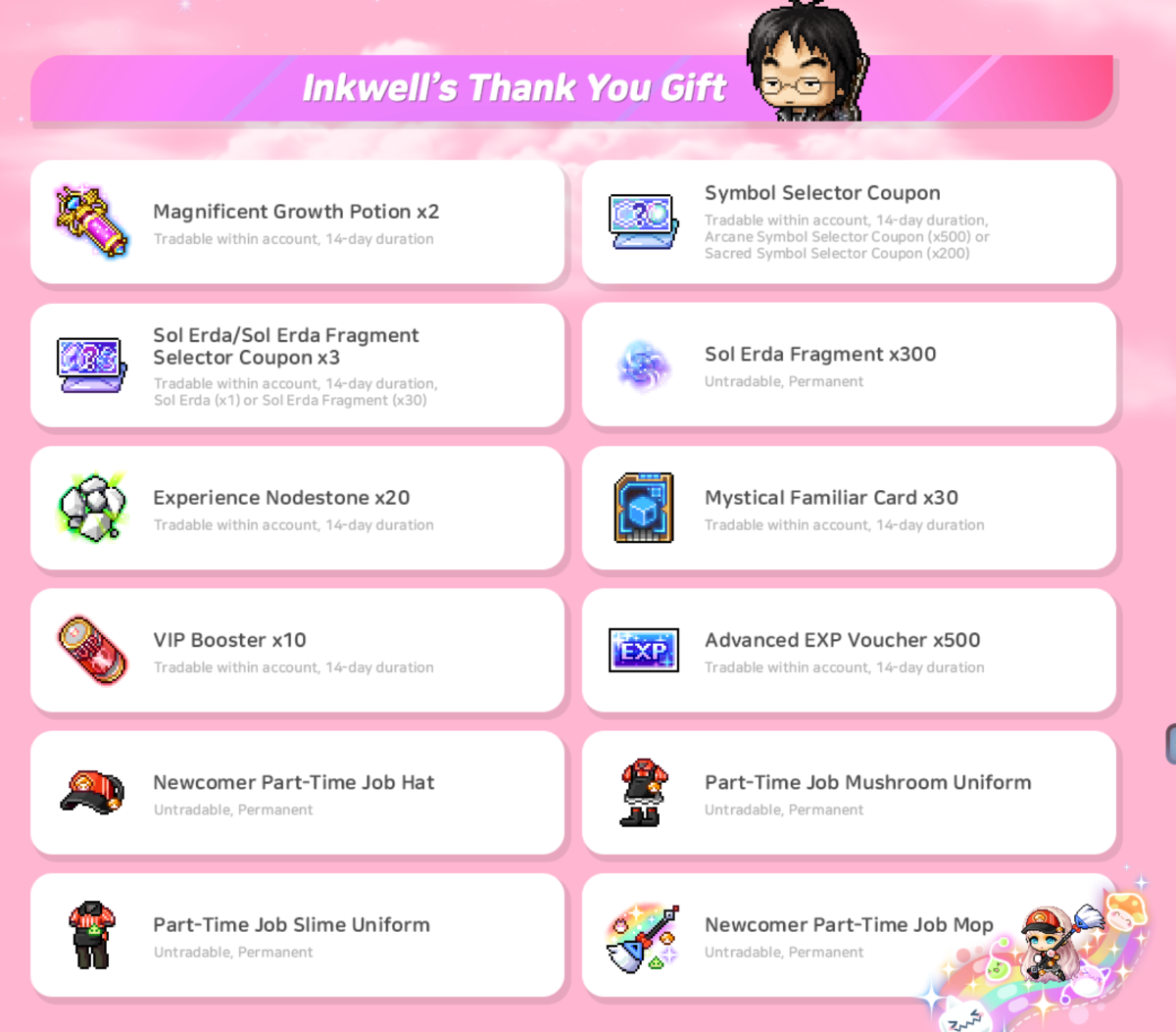 领取方式:通过快速移动按钮找到枫叶管理员NPC对话 > 领取Inkwell的感谢赠礼