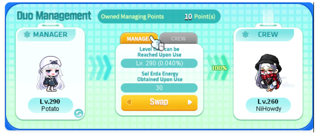 - 点击“[每日任务]”按钮即可完成每日管理任务。每日管理任务每天可完成一次,每周最多可完成 5 次。