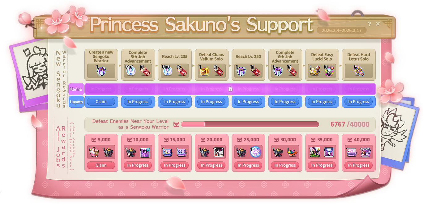 - 适用于 2026 年 2 月 4 日维护后创建的新 Kanna 或 Hayato 角色。
