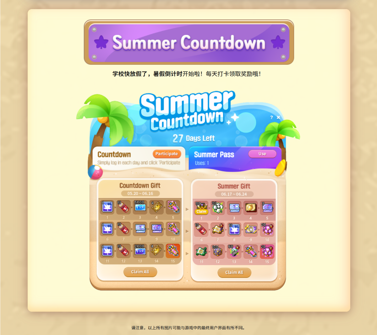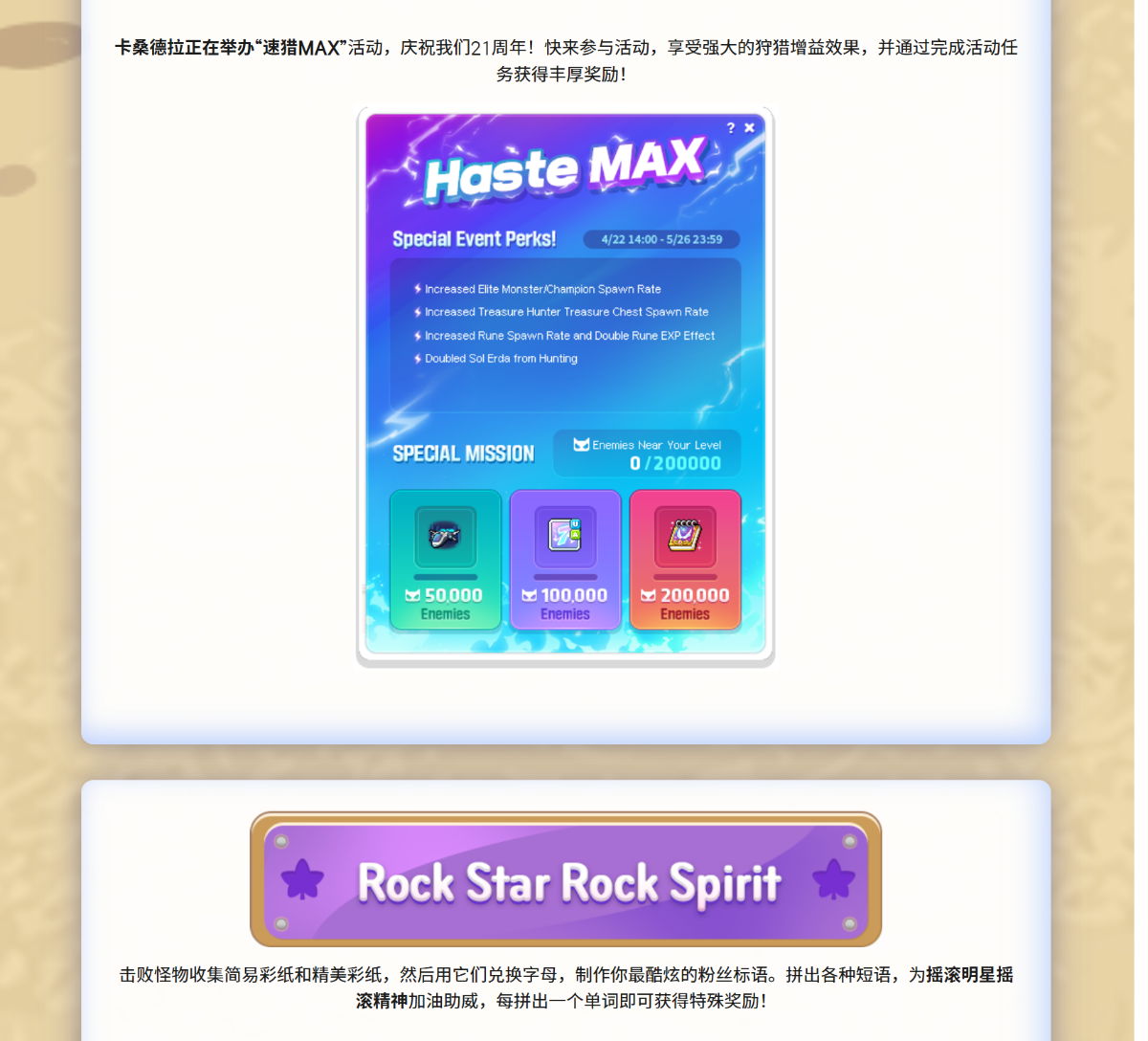本次活动时间为4月22日- 6月17日活动维护前 V269 6月17日 大型版本时间