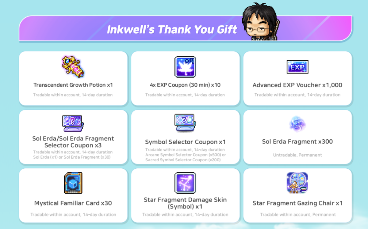 领取方法:通过快速移动按钮找到“管理员GM”,与其对话 → 选择“领取Inkwell的感谢礼物”